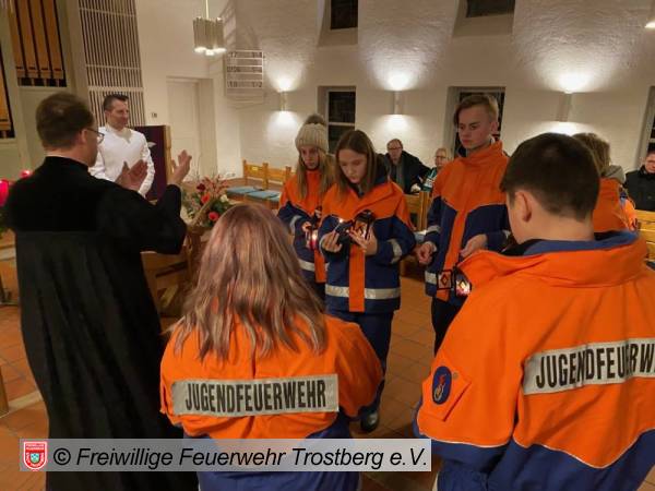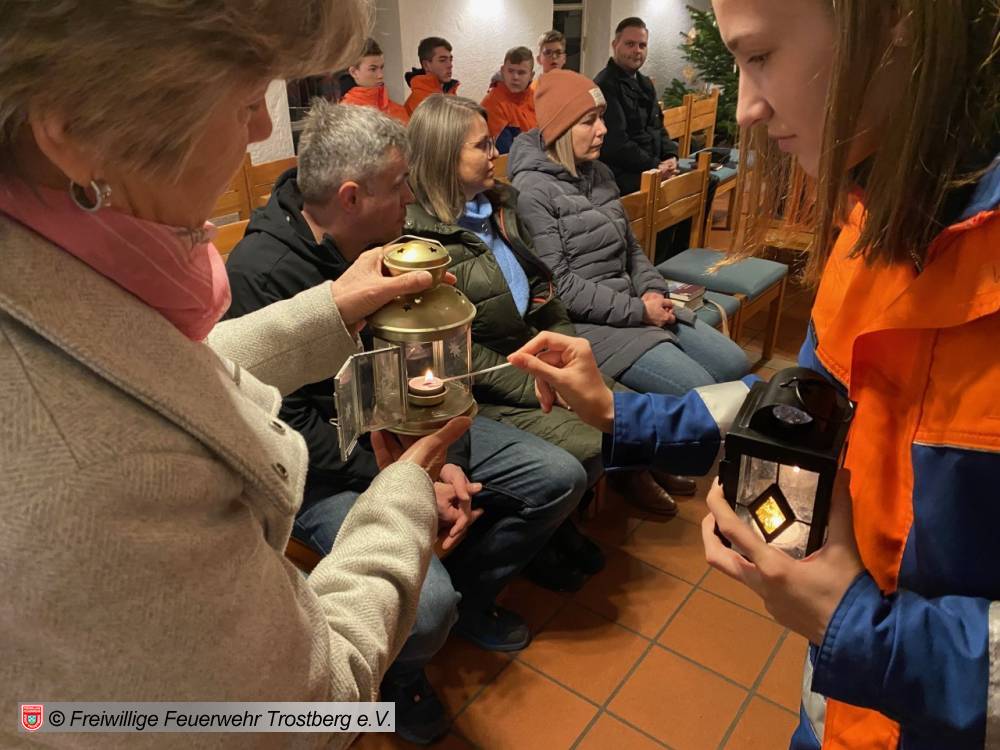Im Rahmen eier ökumenischen Andacht fand heute das Friedenslicht aus Bethlehem in Trostberg Ankunft. Dank unserer Jugendfeuerwehr fand die Verteilung in der evangelischen Christuskirche statt. Nochmal vielen Dank fürs abholen in Tittmoning und Danke auch an die Fanfarenbläser vom Fanfarenzug unserer Wehr, die den Einzug unserer Jugendfeuerwehr in die Kirche musikalisch begleiteten.