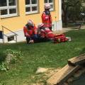Und immer stand an erster Stelle jedes Einsatzes das Retten von Menschenleben. Angefangen von Verkehrsunfällen mit verletzten Personen am Vormarkt, galt es am Marienplatz im ehemaligen Mesnerhaus Personen aus einem brennenden Gebäude zu retten. An der nächsten Station erwartete die Floriansjünger und das BRK zwei eingeklemmte Personen nach einem Forstunfall. Unten am Friedhof war es dann eine verunglückte Autofahrerin, deren Fahrzeug Gefahrengut geladen hatte. An einer weiteren Station fand im Kindergarten in einer Hütte eine Grillparty statt. Hier wurden die feiernden Jugendlichen durch den Gasgrill mit CO2 vergiftet. An der letzten Station fing ein Pkw in der Tiefgarage nach einem Fremdstartversuch Feuer und verletzte zwei Personen schwer.