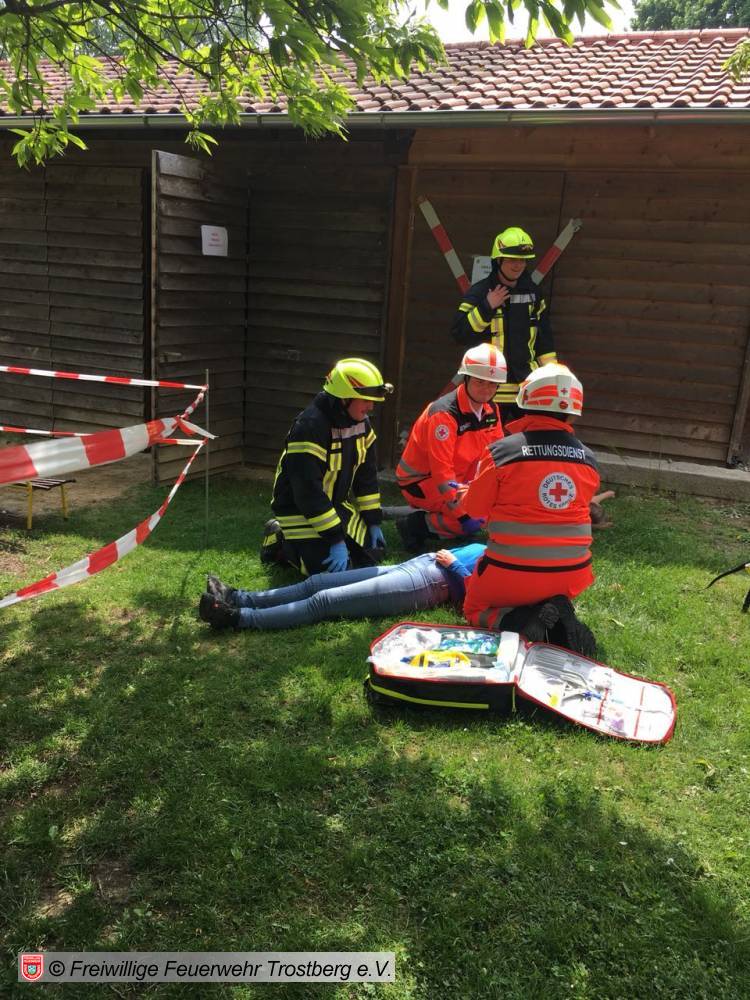 Zusammen mit dem BRK und der Polizei waren rund 200 Einsatzkräfte den ganzen Nachmittag damit beschäftigt insgesamt sechs verschiedene Szenarien abzuarbeiten. Begleitet wurde das Ganze von jeder Menge interessierter Zuschauer an den einzelnen Stationen.
