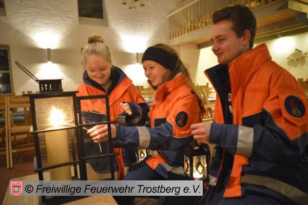 "Jetzt erst recht!!!" Nach dem verheerenden Anschlag in Berlin setzt die Jugendfeuerwehr Trostberg ein Zeichen für den Frieden und übergab das Friedenslicht aus Bethlehem am Donnerstag, 22. Dezember um 20.15 Uhr im Rahmen einer ökumenischen Andacht in der Trostberger evangelischen Christuskirche allen Bürgerinnen und Bürgern.