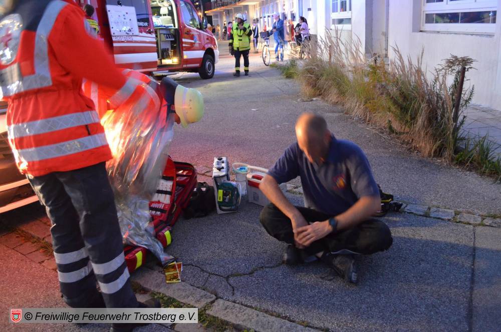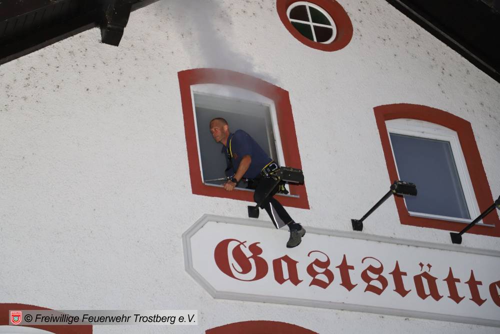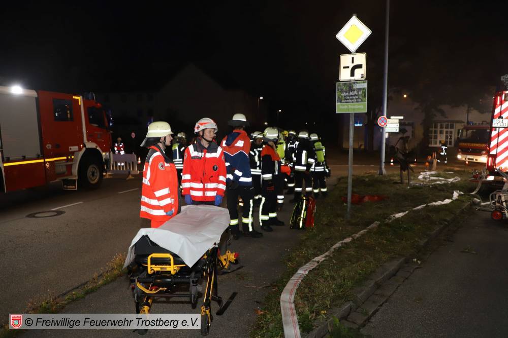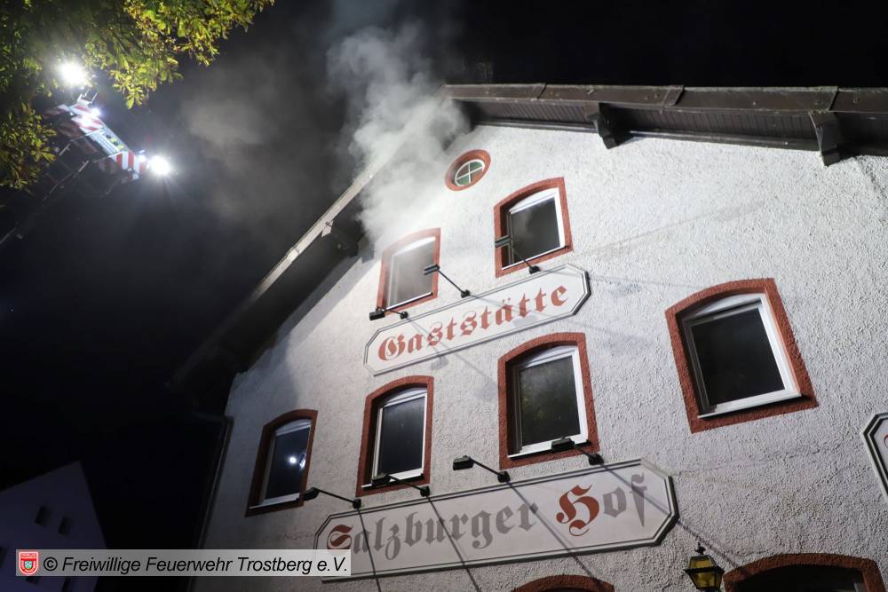 Trostberg. In der Bahnhofstraße fand kürzlich eine großangelegte Feuerwehrübung in der ehemaligen Gaststätte "Salzburger Hof“ statt, die derzeit als Übungsobjekt von den Rettungskräfte genutzt werden darf. Angenommen wurde ein Vollbrand des Anwesens, in dem sich noch mehrere Personen befunden hatten. An der Übung nahmen neben der Freiwilligen Feuerwehr Trostberg auch die Freiwilligen Feuerwehren Lindach, Heiligkreuz und Oberfeldkirchen sowie die Werkfeuerwehr Chemiepark Trostberg und Aktive des Bayerischen Roten Kreuzes aus Trostberg teil. Die Ideen zu dieser fordernden, aber dennoch realistischen Übungen hatte Kommandant Hans-Peter Heimbach, der im Vorfeld auch kaum jemanden „ins Drehbuch einweihte“.