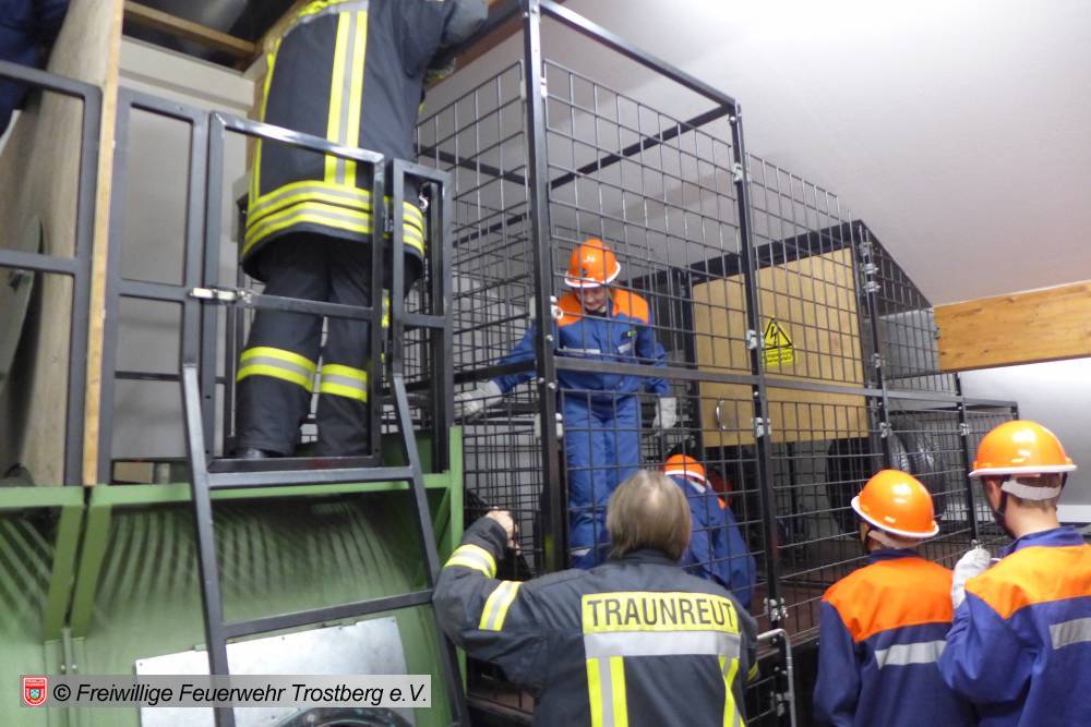 Im Rahmen der Jugendausbildung war heute die Jugendgruppe der FFW Traunreut bei der Feuerwehr Trostberg zu Gast. Begleitet wurden die 14 Jugendlichen zwischen 12 und 14 Jahren von einem Teil des Ausbilderteams. Nach einer kurzen Begrüßung durch den stellv. Kommandanten Florian Zimmermann und Jugendwart Christian Grolig wurden die Räumlichkeiten der Kollegen aus Trostberg besichtigt. Genauer unter die Lupe genommen wurde der komplette Fuhrpark, welcher im Großen und Ganzen in vielen Bereichen ähnlich ist. Anschließend stand noch die Besichtigung der Übungsstrecke für die Atemschutzgeräteträger auf dem Programm. Diese konnte natürlich nicht nur besichtigt werden, sondern mit viel Geschick und Teamgeist auch durchlaufen werden. Die vorhandenen Hindernisse wurden perfekt gemeistert und der Parcours erfolgreich absolviert. Bei einem Erfrischungsgetränk wurde noch geplaudert und man war sich einig, dass im nächsten Jahr ein Gegenbesuch stattfinden wird.