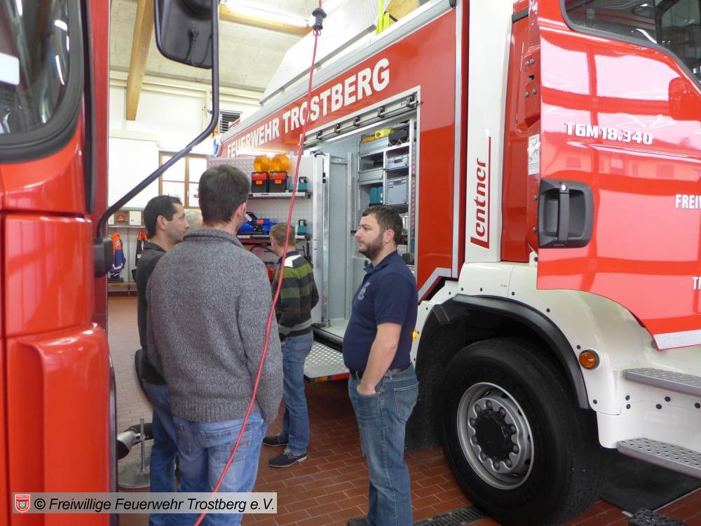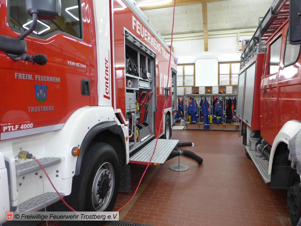 Am gestrigen Samstag kamen um 10 Uhr einige Kollegen der Feuerwehr Babensham zu uns in die Feuerwache. Grund Ihres besuches war eine Führung durch die Wache mit einem Hauptaugenmerk auf unser PTLF4000. Das Fahrzeug wurde den Kollegen aus Babensham ausführlich gezeigt und erklärt. Während der Führung kam es um 11 Uhr zu einer Alarmierung der Feuerwehr Trostberg. Die Brandmeldeanlage im Pur Vital hatte ausgelöst. Da es sich nur um angebrannten Speck handelte, konnte die Führung relativ zeitnah fortgesetzt werden. Für unsere Kameraden aus Babensham war es auch sehr interessant einmal zu sehen wie eine andere Feuerwehr ausrückt. Nach der Besichtigung gab es zum Abschluss noch eine kleine Brotzeit.