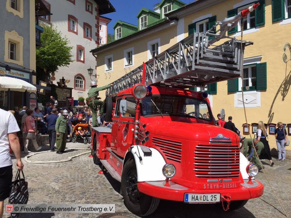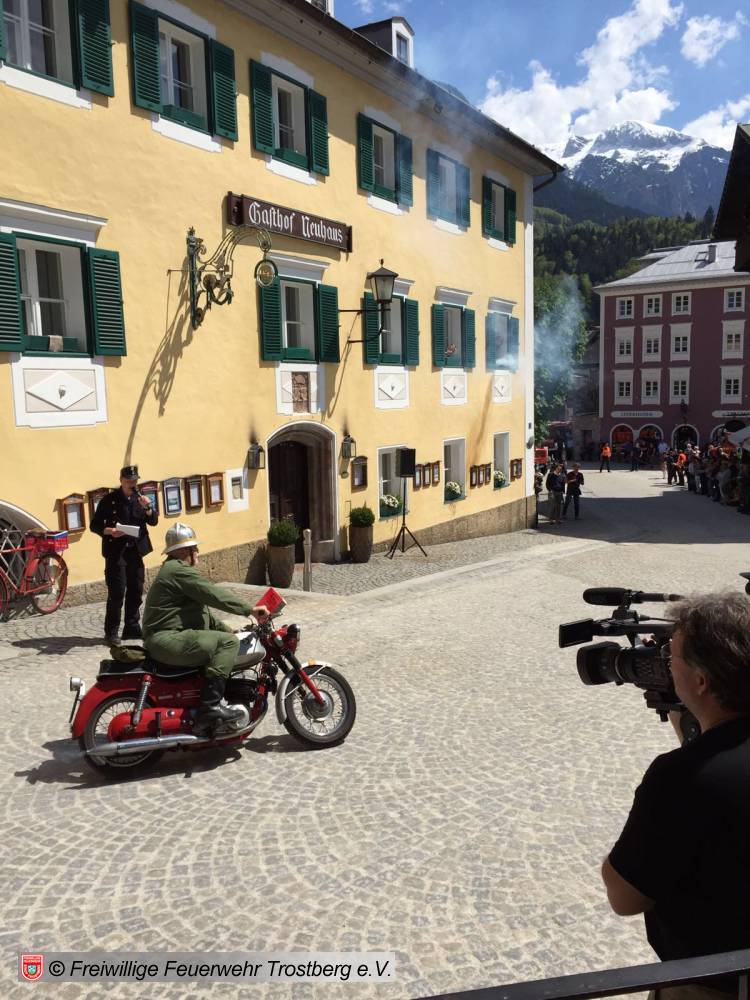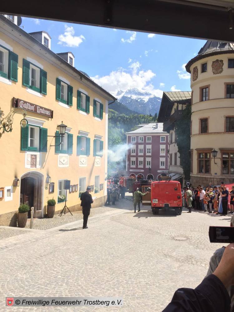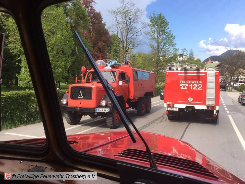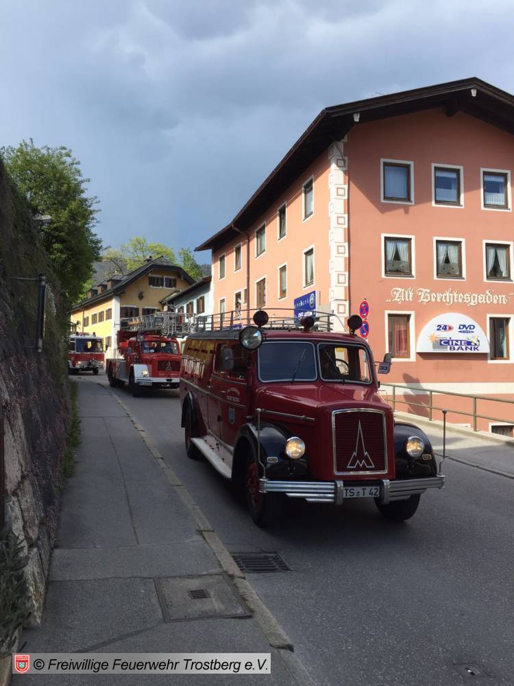 07.05.2016Mit dem TLF 15, Baujahr 1951 beteiligt sich die Trostberger Feuerwehr am 150 j. Gründungsjubiläum der Feuerwehr Berchtesgaden.
