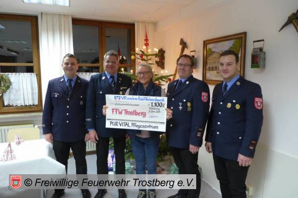 Wenn es um die Verpflegung der eigenen Mannschaft am alljährlich stattfindenden Hallenfest geht, so kann die Feuerwehr Trostberg mittlerweile auf einen verlässlichen Partner zurückgreifen. Erneut hat das PUR VITAL Pflegezentrum Trostberg anlässlich des zurückliegenden 14. Hallenfest einen beträchtlichen Betrag für die Verpflegung zur Verfügung gestellt. Vorsitzender Michael Pöpperl, stv. Vorsitzender Martin Sperger, Kommandant Hans-Peter Heimbach und stv. Kommandant Florian Zimmermann Bedankten sich bei der Hausleitung Karin Steiglechner. Alle Beteiligten bedankten sich für die stets gute Zusammenarbeit untereinander.