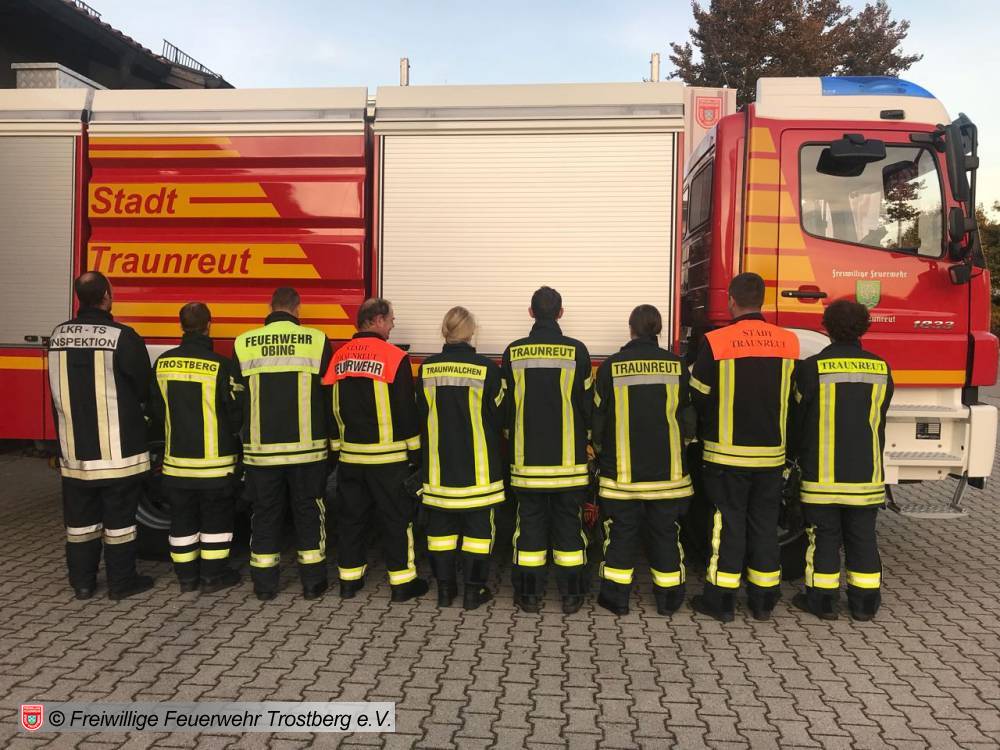 Während der Beerdigung unserer Kameraden wurde die Einsatzbereitschaft durch die Ortsteilfeuerwehren sowie die Feuerwehr Traunreut sichergestellt. Eine Abordnung aus Traunreut war zu diesem Zweck mit zwei Fahrzeugen an der Feuerwache Trostberg stationiert. Im besagten Zeitraum wurde tatsächlich auch ein Einsatz abgearbeitet.