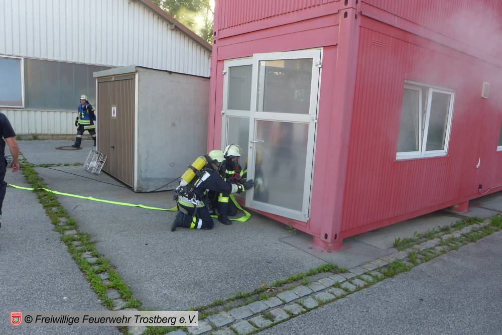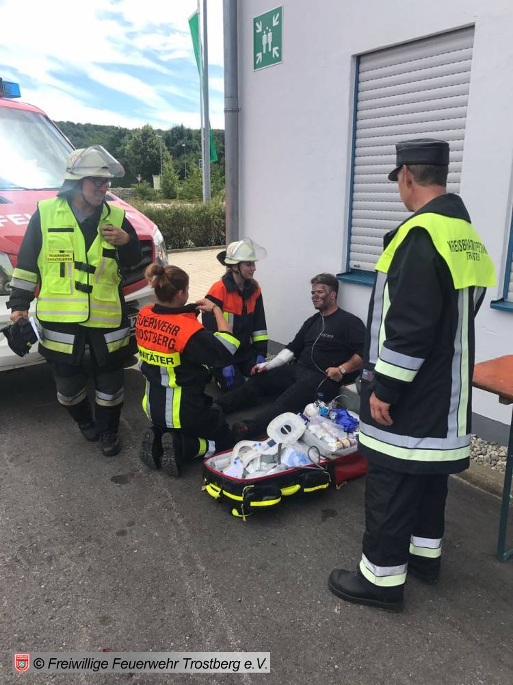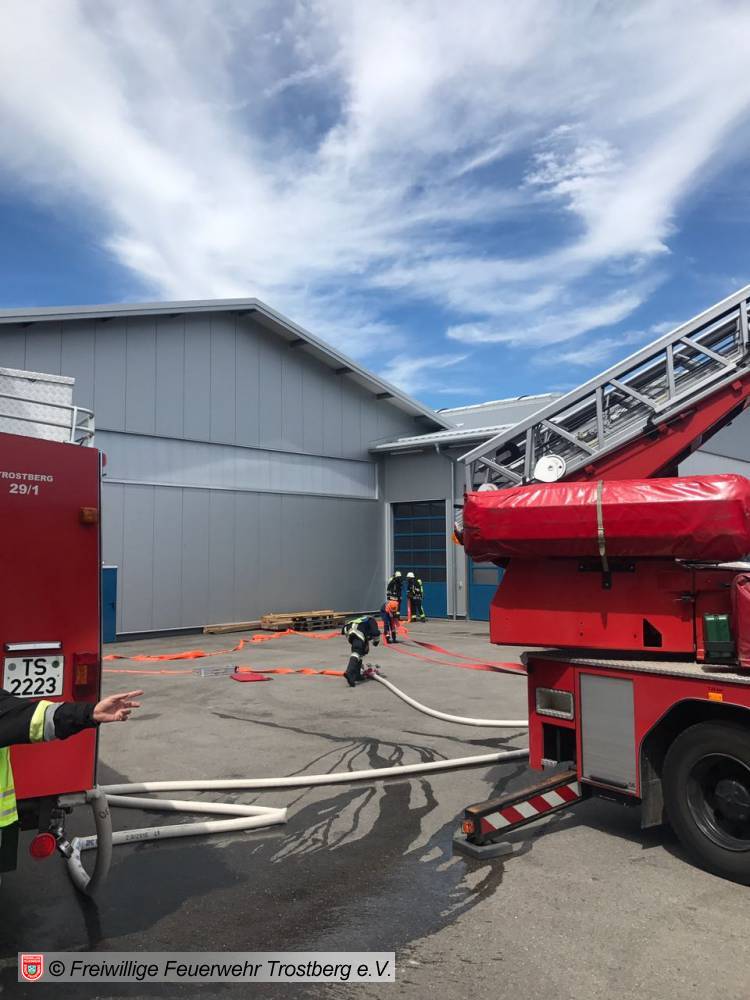 Im Anschluss gab es dann ein deftiges Mittagessen. Zum Abschluss galt es dann noch den Brand einer LKW Waschhalle zu löschen.