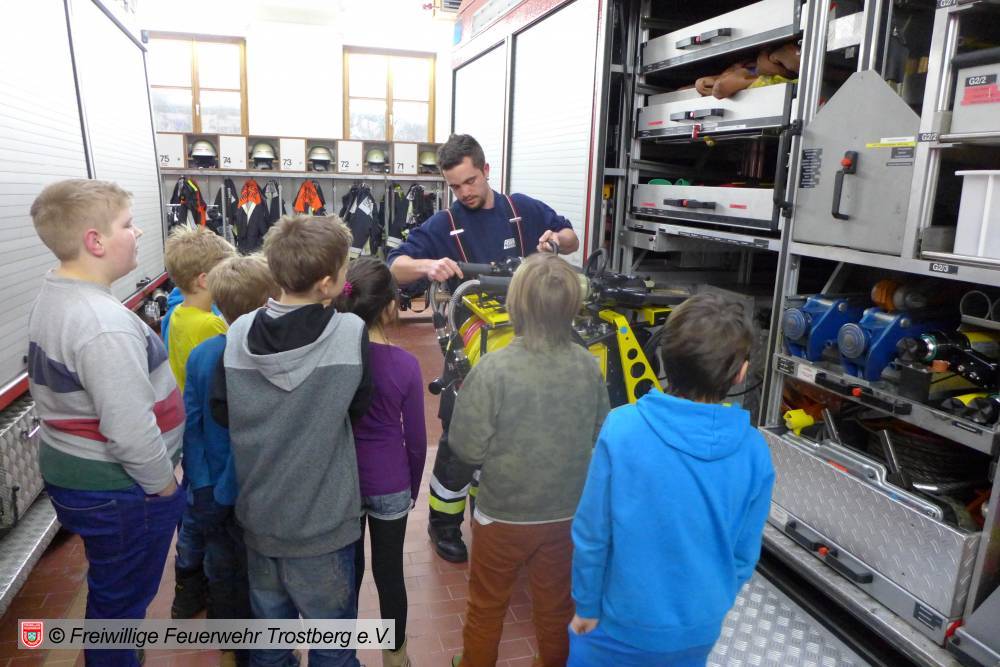Im Rahmen der Zusammenarbeit zwischen Feuerwehr und Wasserwach war die Kids-Gruppe der Wasserwacht Trostberg heute zu Besuch im Feuerwehrhaus Trostberg. Die 8 Jungen und Mädchen wurden von Ihrer Teamleiterin Constanze Weisky und Ihrer Kollegin Susi Berg begleitet. Nach einer kurzen Begrüßung vom neuen Jugendwart Jakob Liedl sowie seinen Kameraden Florian Obergröbner und Mario Bernauer wurde die Besichtigung des Feuerwehrhauses begonnen. Was genauer unter die Lupe genommen wurde war der Fuhrpark, welcher sich im Großteil gegenüber der Wasserwacht Fahrzeuge sehr unterscheidet. Im Anschluss wurde noch die Atemschutz-Übungstrecke besichtigt. Diese konnte auch mit viel Teamarbeit und Geschick gemeistert werden. Die Hindernisse und die Strecke wurden mit Bravur absolviert. Nach der Führung durch das Feuerwehrhaus wurden noch Fragen, der "Wasserwacht-Bambinos" beantwortet.