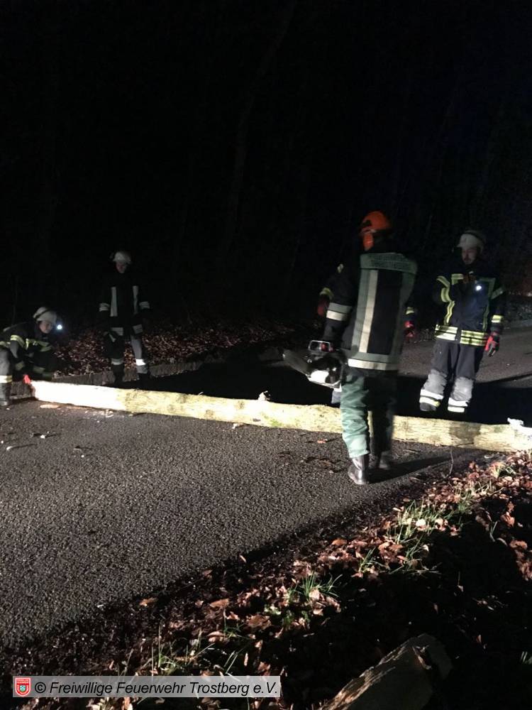 Baum quer über der Fahrbahn. Wurde durch die Feuerwehr beseitigt.