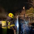 Gartenhütte bei Ankunft in Vollbrand. Hütte unter Atemschutz abgelöscht. Einsatzstelle Werkfeuerwehr Chemiepark übergeben. Bilder FF Trostberg und Chemiepark Trostberg.