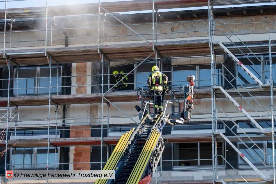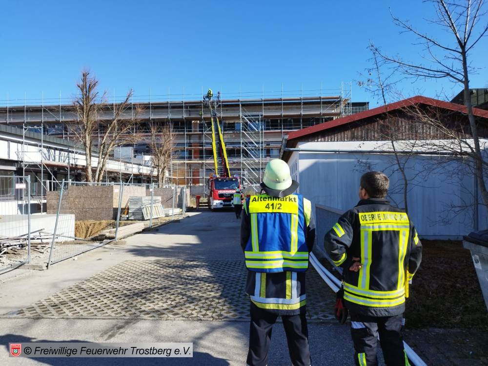 Dehnfugenbrand über mehrere Etagen. Bilder Kreisfeuerwehrverbnd Traunstein, FF Trostberg sowie 112News-Chiemgau.