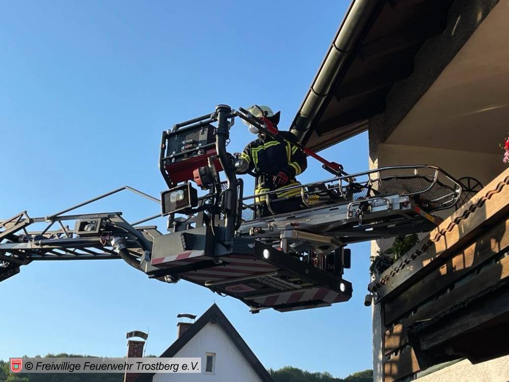 Person über Drehleiter gerettet und Rettungsdienst übergeben.