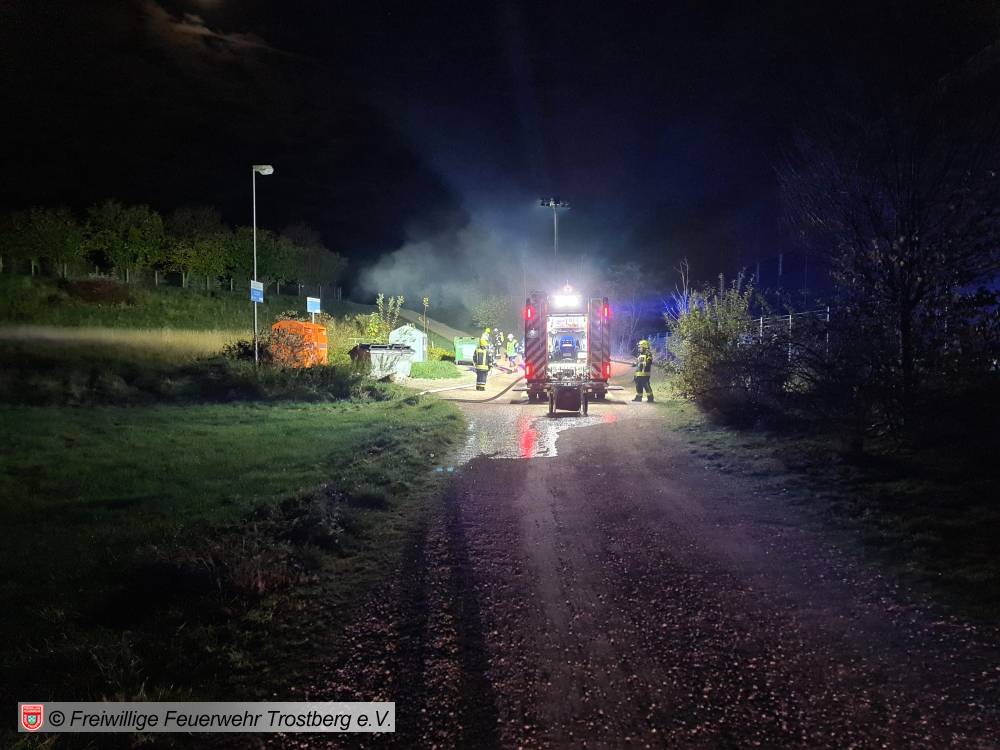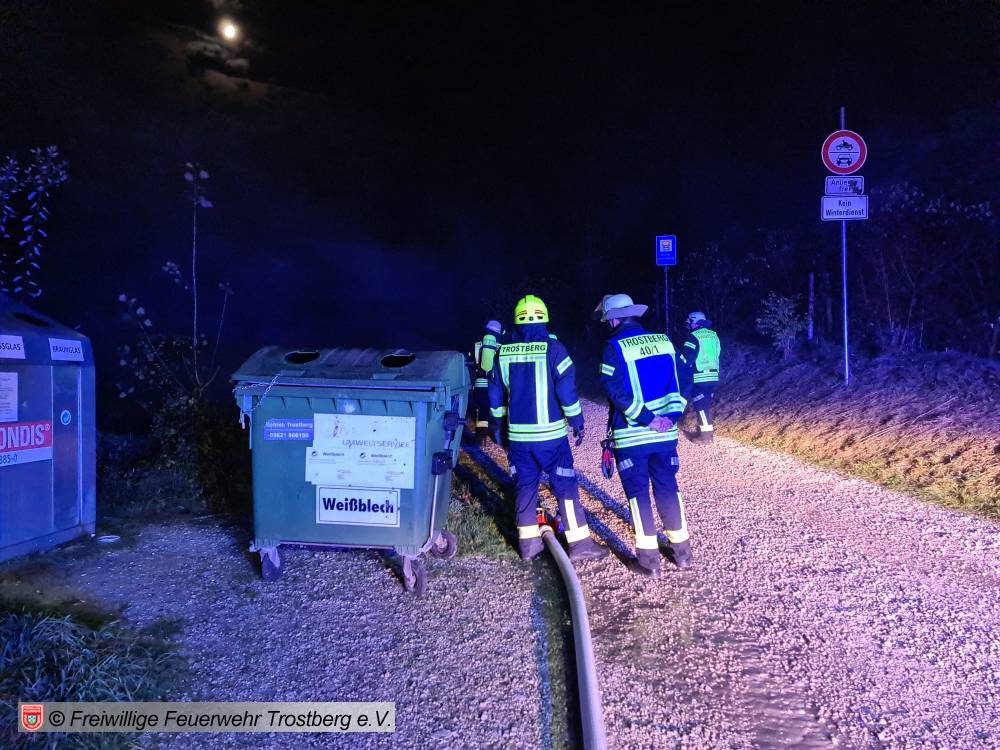 Erneute Brandstiftung in Trostberg. Mehrere Zeitungen brannten neben Müllcontainern.
