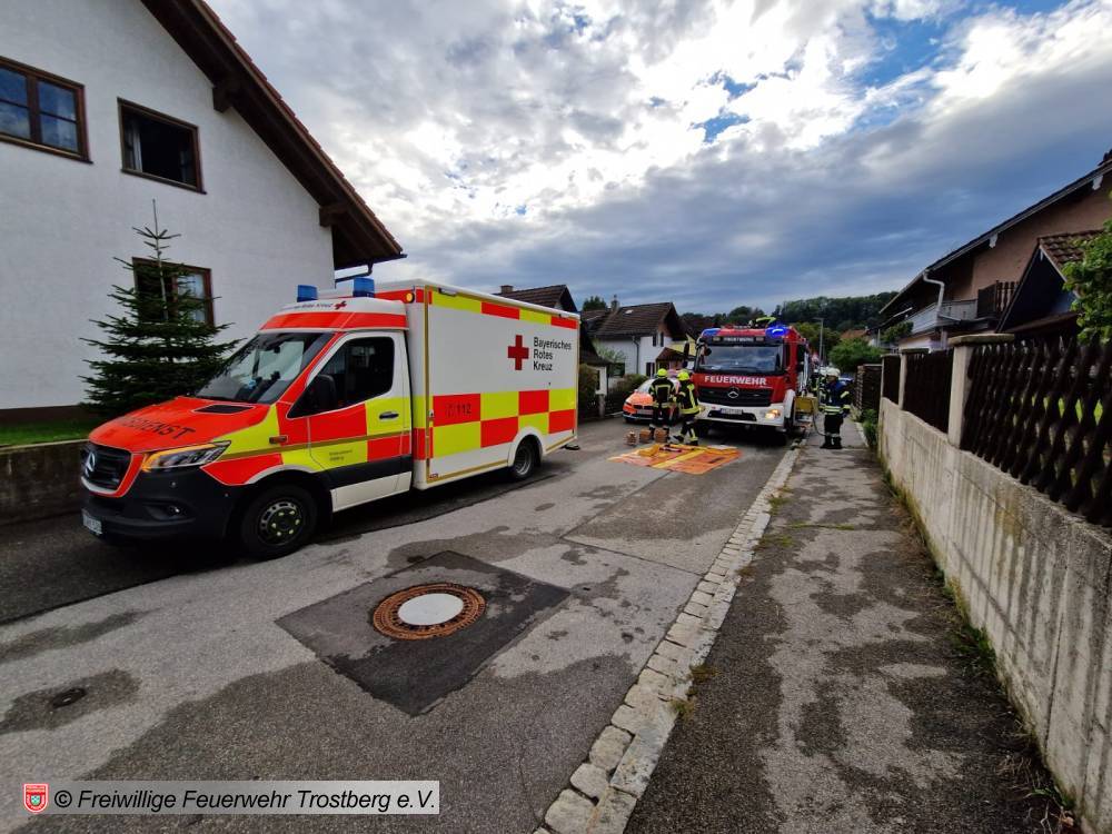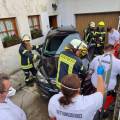 Person in Einfahrt unter PKW Türe eingeklemmt. Person befreit und dem Rettungsdienst übergeben.