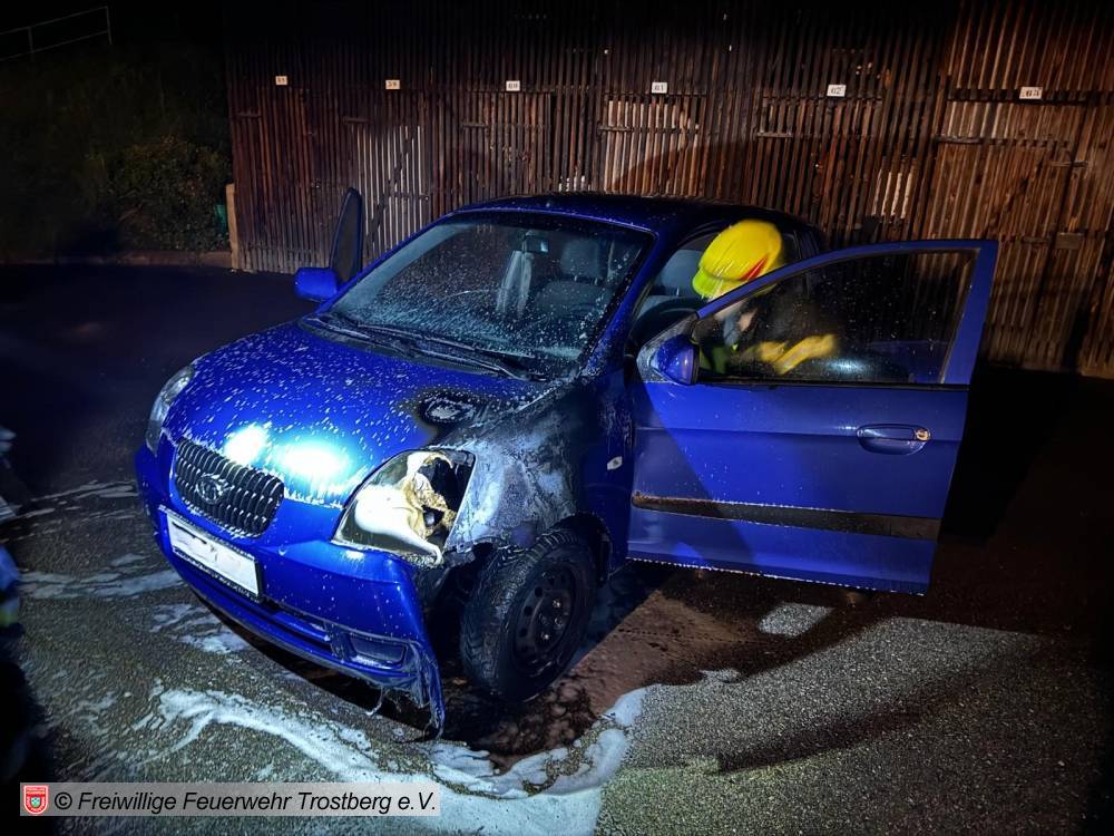 PKW brannte im Frontbereich. Feuer vor eintreffen durch Anwohner bereits gut abgelöscht. Nachlöscharbeiten und Kontrolle wurden durchgeführt.