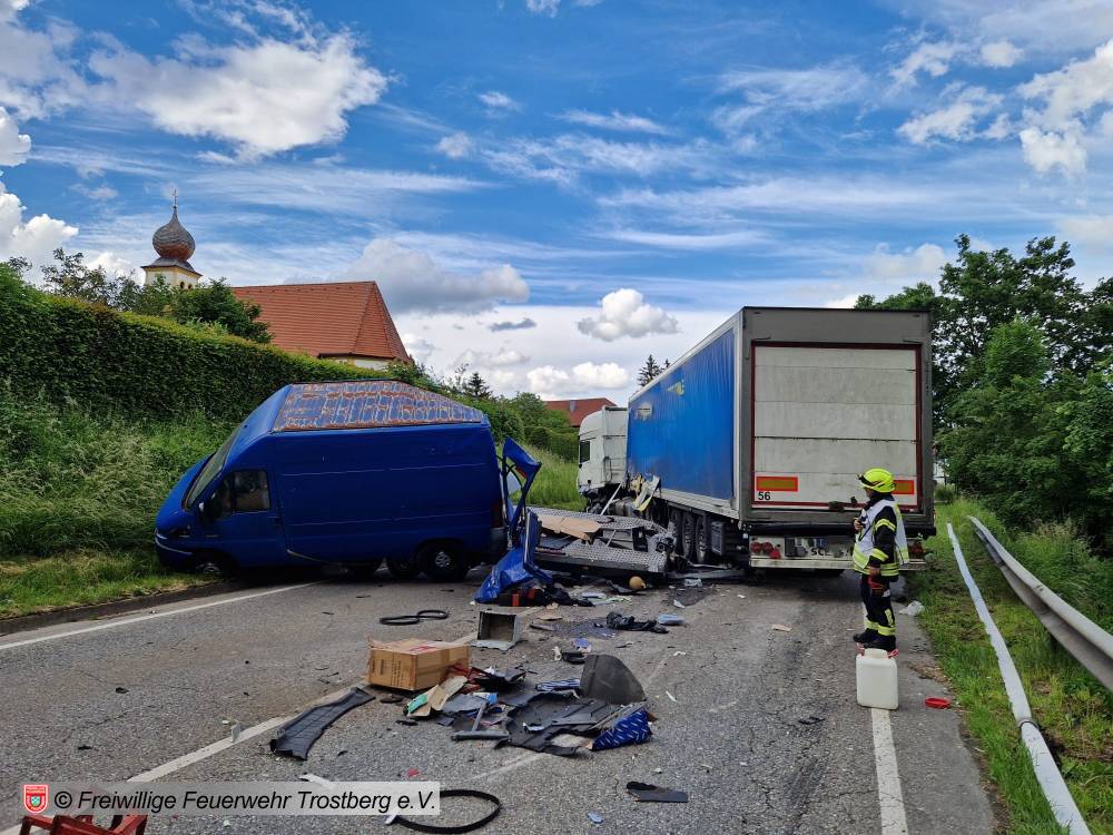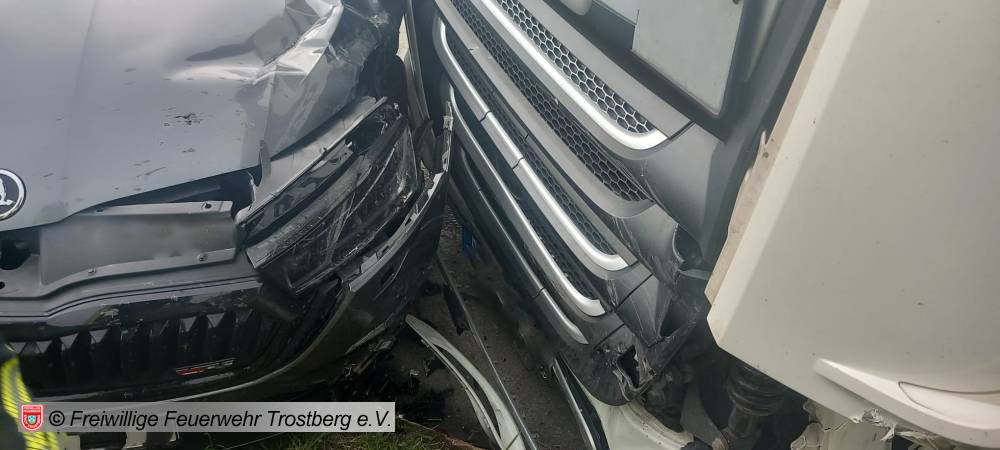 Schwerer Verkehrsunfall, LKW und 2 PKW beteiligt