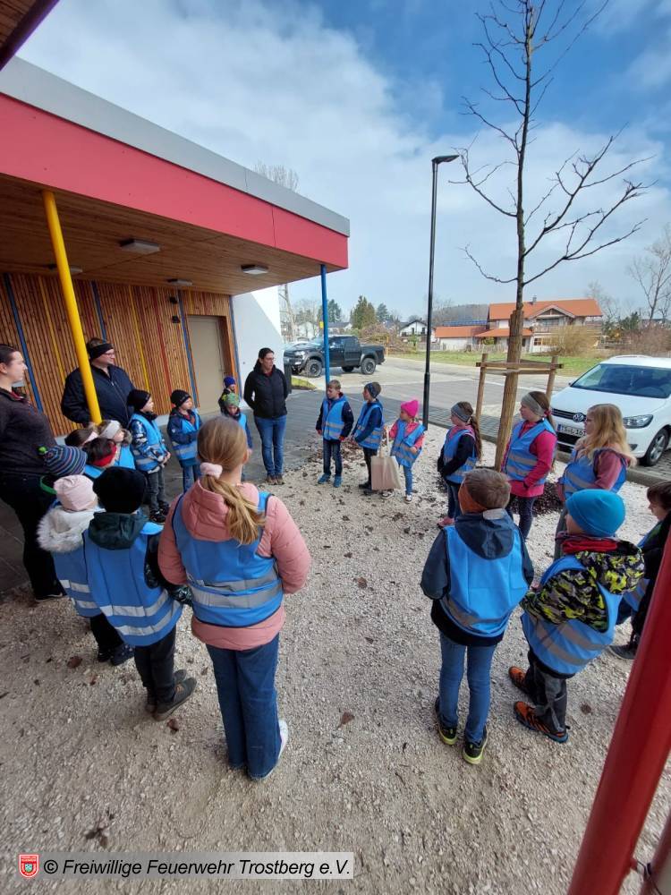 Die zweite Gruppe hat zuerst noch Atemschutzgeräte selbst gebastelt, da der Rettungswagen unterwegs war! Im Anschluss haben wir dann aber auch einen Spaziergang zur Wache gemacht und durften uns dort ebenfalls alles anschauen!