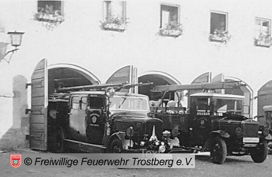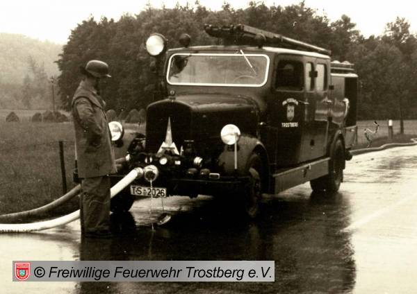 LF mit einer vor dem Fahrzeugkühler gelagerten Magirus-Feuerlösch-Kreiselpumpe Typ „P IVv“ mit einer Leistung von 1200 l/min