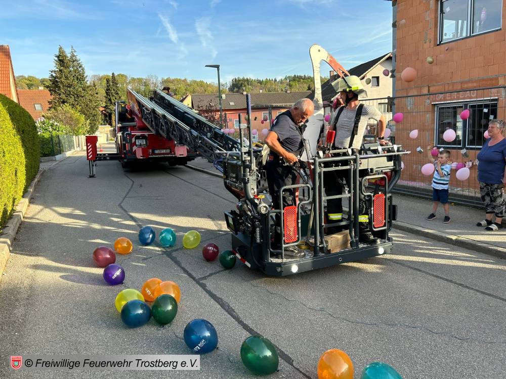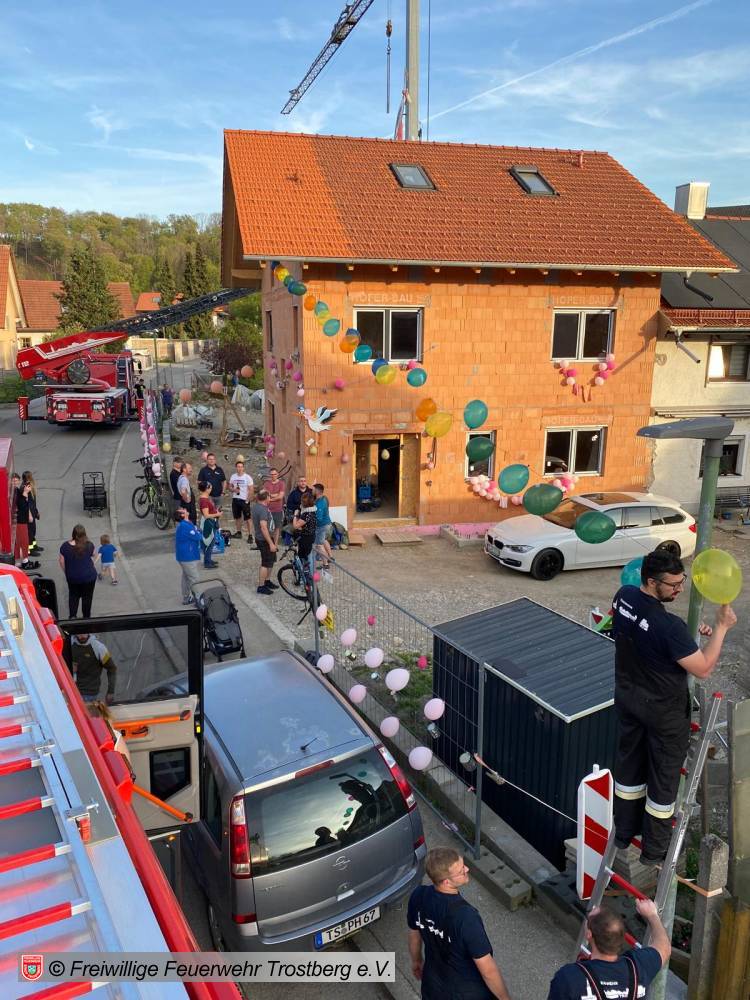 Herzlichen Glückwunsch an Florian Pettinger und seiner Frau Isabella zu ihrer Tochter Laura Sophia. Wir wünschen viel Glück und Gesundheit! Der Alarm zum Storchanflug erfolgte prompt und mit vereinten Kräften und unter Einsatz unserer Drehleiter konnte der Storch sicher landen.