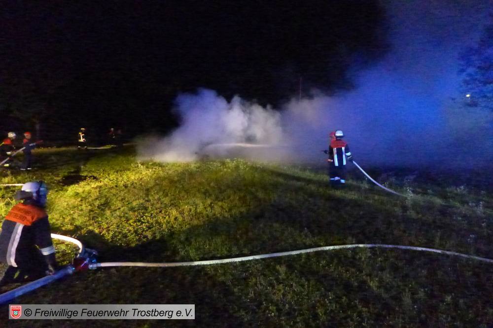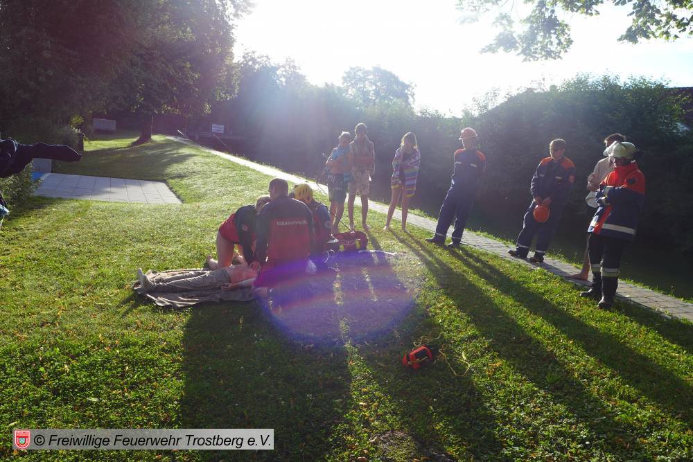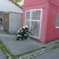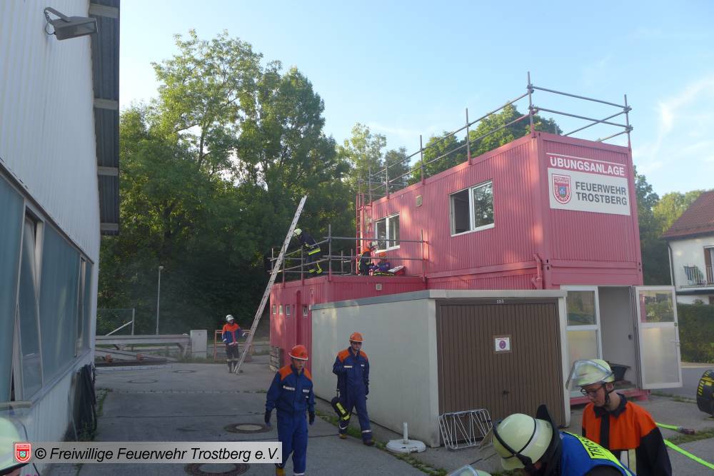 Neben kleineren Einsätzen wie z.B. den Brand einer Mülltonne, der Katze auf dem Baum oder der Rettung einer Person von einem Hausdach mussten sich die Anwärter/innen auch mit einem Zimmerbrand auseinander setzen. Nach den ersten erfolgreichen Einsätzen wurde am Feuerwehrhaus zusammen gegrillt. Um 4 Uhr morgens brannte dann ein Gartenhaus gefolgt von der Rettung einer Person aus fließendem Gewässer.