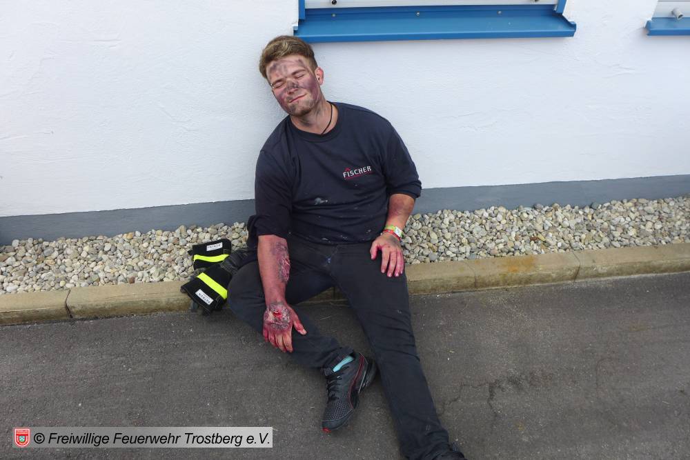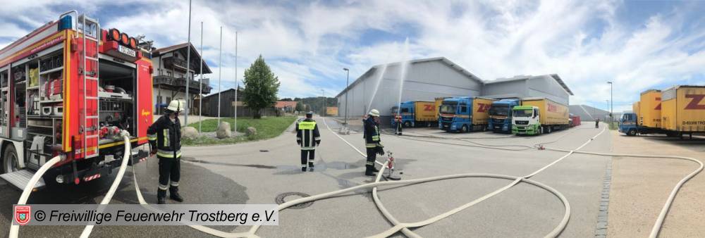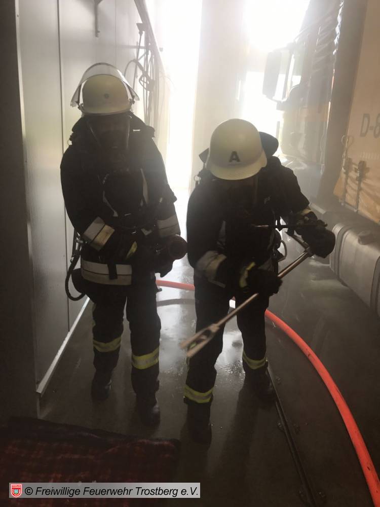 Im Anschluss gab es dann ein deftiges Mittagessen. Zum Abschluss galt es dann noch den Brand einer LKW Waschhalle zu löschen.