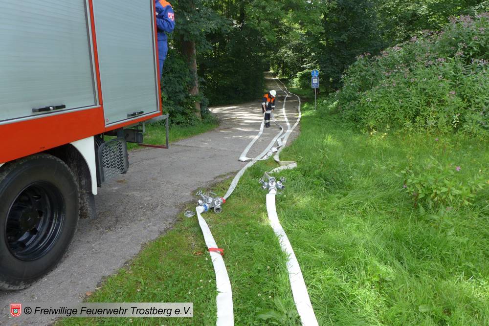 Eine größere Übung gab es dann am Samstag Vormittag. Zusammen mit den Kameraden der Jugend aus den Ortsfeuerwehren Lindach und Heiligkreuz wurde eine lange Schlauchleitung aufgebaut.