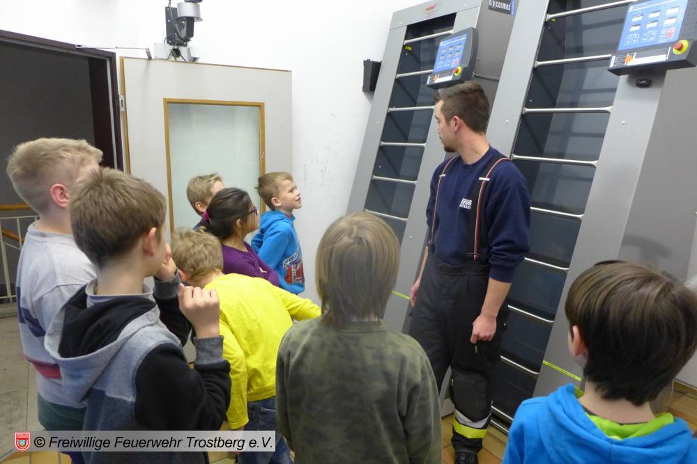 Im Rahmen der Zusammenarbeit zwischen Feuerwehr und Wasserwach war die Kids-Gruppe der Wasserwacht Trostberg heute zu Besuch im Feuerwehrhaus Trostberg. Die 8 Jungen und Mädchen wurden von Ihrer Teamleiterin Constanze Weisky und Ihrer Kollegin Susi Berg begleitet. Nach einer kurzen Begrüßung vom neuen Jugendwart Jakob Liedl sowie seinen Kameraden Florian Obergröbner und Mario Bernauer wurde die Besichtigung des Feuerwehrhauses begonnen. Was genauer unter die Lupe genommen wurde war der Fuhrpark, welcher sich im Großteil gegenüber der Wasserwacht Fahrzeuge sehr unterscheidet. Im Anschluss wurde noch die Atemschutz-Übungstrecke besichtigt. Diese konnte auch mit viel Teamarbeit und Geschick gemeistert werden. Die Hindernisse und die Strecke wurden mit Bravur absolviert. Nach der Führung durch das Feuerwehrhaus wurden noch Fragen, der "Wasserwacht-Bambinos" beantwortet.