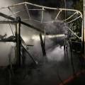 Gartenhütte bei Ankunft in Vollbrand. Hütte unter Atemschutz abgelöscht. Einsatzstelle Werkfeuerwehr Chemiepark übergeben. Bilder FF Trostberg und Chemiepark Trostberg.