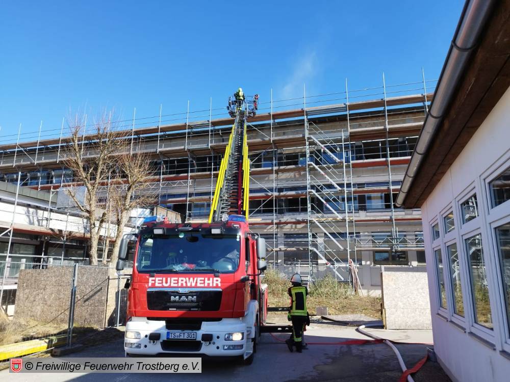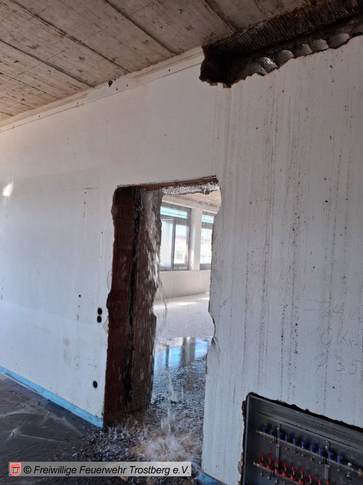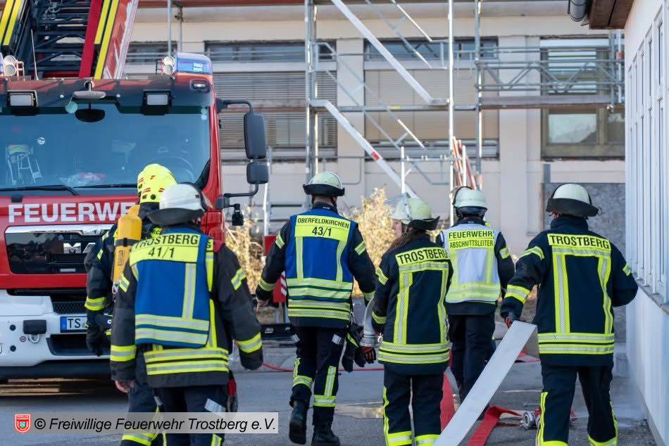 Dehnfugenbrand über mehrere Etagen. Bilder Kreisfeuerwehrverbnd Traunstein, FF Trostberg sowie 112News-Chiemgau.