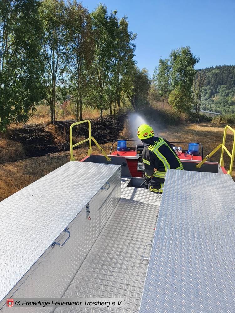 Flächenbrand auf ca. 100 qm. Glutnester abgelöscht und mit Wärmebildkamera kontrolliert.