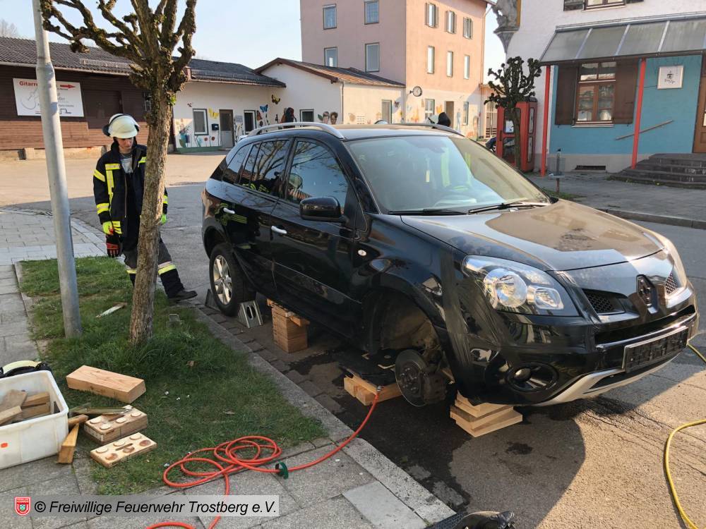 Katze aus 2tem Stockwerk auf PKW gefallen. Anschließend versteckte sich die Katze im Motorbereich und verkeilte sich, sodass sie dort eingeklemmt war. Katze wurde aus ihrer misslichen Lage befreit und dem Besitzer übergeben.