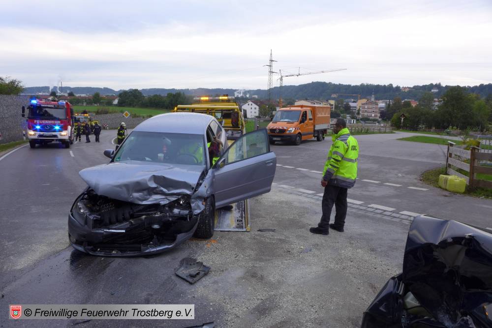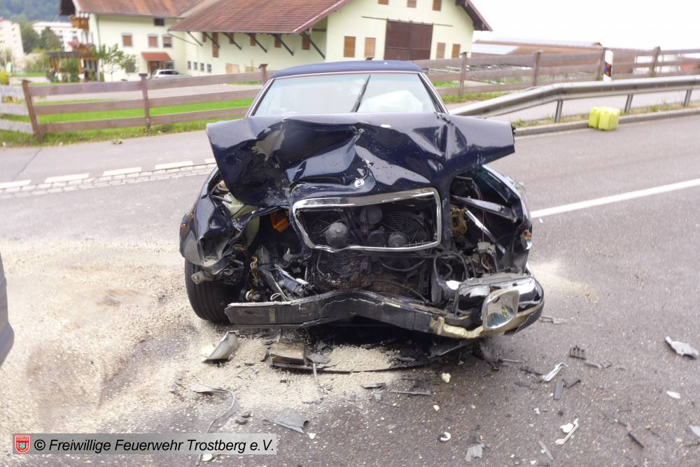 2 PKW frontal zusammengestoßen. 2 Verletzte Personen.